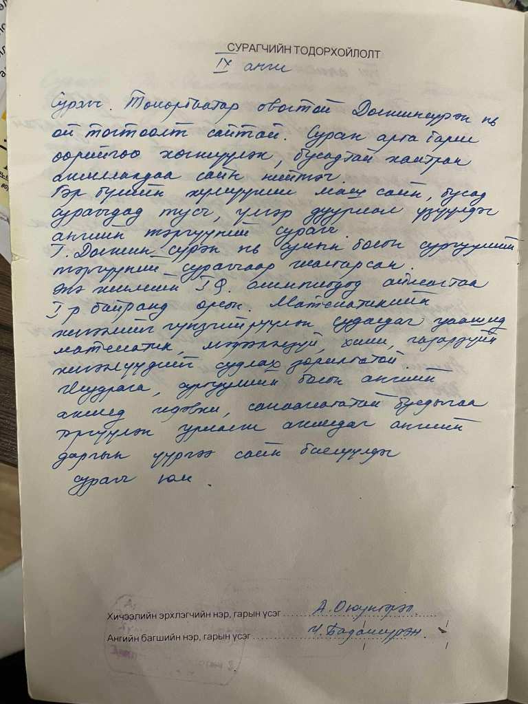 Өвдсөнөөс нь хойш хоёр удаа очиход хотын хүүхдүүдийн өөр байгаа тухай, багшийн ажлаа хийсээр байгаад тэтгэвэртээ гарсан тухай, бидний ангийн хүүхэд нэг бүрийг дурсан ярьсан даа. Ачит багш минь тэнгэрт хальсан гунигт мэдээг сонсоод нулимс дуслуулан таныгаа дурсан бичлээ. Хэцүү үе тулгарах бүрт би чадахгүй байгаа бол бусад ч бас чадахгүй байгаа, чи дунджаас илүү, манлайд нь байх цөөхөн хэдийн нэг, дахиад жаахан хичээхэд болно, үргэлж өөртөө итгэ гэх өөрийгөө дэмнэх урамыг зүрхэнд минь хийж өгсөн багшдаа маш их хайртай. Тэнгэрт байх өөр олон бяцхан зүрхнүүдэд итгэлийн галыг нь асаах багш хэрэг болсон юм байлгүүдээ…